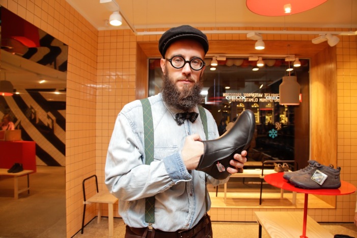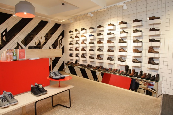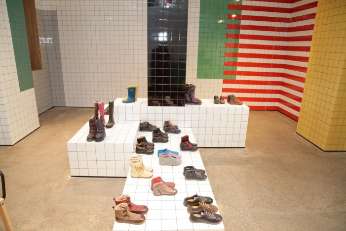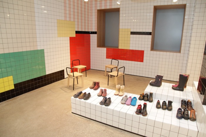 Для дизайна Camper на Владимирском проспекте была выбрана концепция Томаса Алонсо (Tomás Alonso), обращающая на себя внимание благодаря яркой разноцветной квадратной плитке, которой выложены стены и другие поверхности. Неотъемлемой частью оформления магазина стала мебель, спроектированная Томасом Алонсо в лондонской студии эксклюзивно для Camper. Сочетание деревянных деталей с различного вида трубами, покрытыми лаком – “визитная карточка” Томаса, для Camper дизайнер выбрал белый дуб. Магазины Camper, оформленные Томасом Алонсо, также есть в Лондоне, Глазго, Генуе и Салониках.