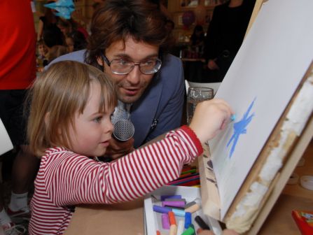 Затем все детские произведения превратились в лоты и были распроданы на импровизированном аукционе, ведущим которого выступил главный редактор журнала StarHit Андрей Малахов.