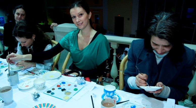 После официальной части состоялся показ фарфоровых платьев от художников Императорского фарфорового завода и мастер-класс по росписи фарфора.