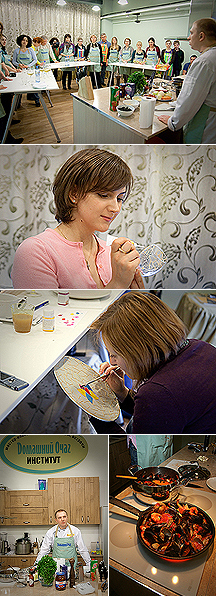 В Институте «Домашнего Очага» – удобное время занятий и большой выбор курсов. Сюда приходят не только за знаниями, но и за идеями, положительными эмоциями и друзьями по интересам. Здесь уютная обстановка, небольшие группы и приятное общение. И главное – в отличие от многочисленных курсов и школ, «Домашний Очаг» предлагает широкий выбор разнообразных качественных занятий, которые проходят под одной крышей, в уютной домашней атмосфере, по адекватной цене.