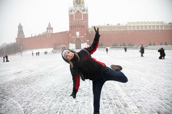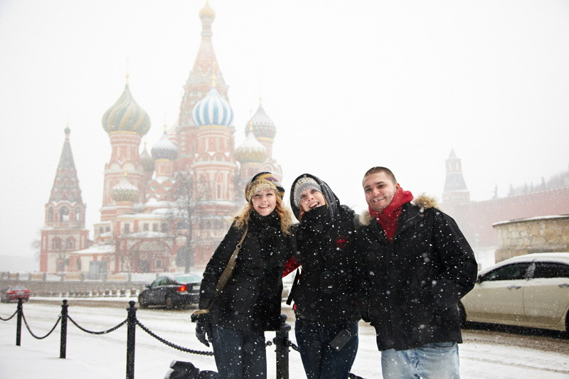 Поиск счастья начался в сердце столицы – на Красной площади, которая в этот день была окутана пронизывающим ветром и мокрым снегом. Но оказалось, что ненастная погода – это мелочь, и она не может помешать людям быть счастливыми. «Когда у тебя отличное настроение, и ты открываешь для себя что-то новое, то даже ненастье воспринимается со знаком плюс», – решили участники экспедиции и сделали несколько веселых фотографий на фоне собора Василия Блаженного. А затем отправились в ГУМ на экскурсию. Покинули ребята Красную площадь преображенными: в шапках-ушанках, с матрешками в руках и довольными улыбками на лице.