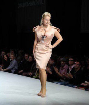 В показе приняла участие главный редактор журнала Shopping Guide Екатерина Одинцова, вышедшая на подиум в изысканном платье из жемчужно-персикового атласа (на фото внизу).