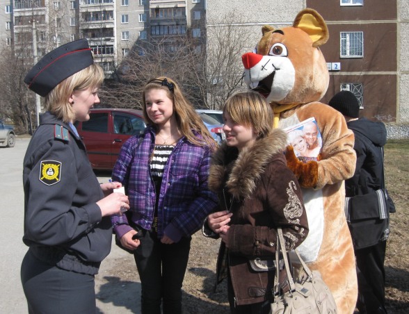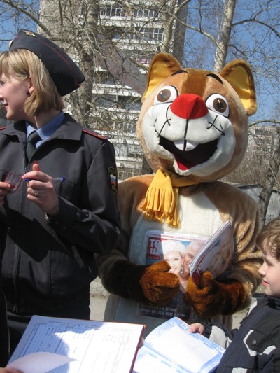 В Ленинском районе (Екатеринбург) милиционеры дежурили у перехода рядом со школой N 154. "Здесь проезжая часть находится близко со школьным двором. Школьники, спешащие скорее попасть после уроков домой, не обращают внимания на знаки и переходят дорогу вне зоны пешеходного перехода", - пояснили сотрудники ГИБДД. Детям, нарушающим правила, сотрудники милиции сделали пометки в дневниках - наклеили специальные наклейки с замечаниями. А хомяк Пульт напомнил школьникам, как правильно переходить дорогу по пешеходному переходу и с удовольствием фотографировался со всеми желающими.