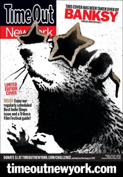 Загадочный, великий и ужасный Бэнкси в преддверии премьеры своего фильма «Выход через сувенирную лавку» решил оформить обложки Time Out для пяти мегаполисов: Лондона, Нью-Йорка, Сиднея, Москвы и Санкт-Петербурга. Далекий от рекламных кампаний и прочих маркетинговых ходов, художник все же решился на эту акцию, чтобы привлечь зрителей к своему фильму. В любом случае, редакции Time Out рады предложить читателям еще одну коллекционную обложку и предоставить уникальную возможность прочитать интервью с разрушителем спокойствия лондонских улиц, осквернителем музеев, большим хулиганом и, наверное, человеком с самым изысканным вкусом на этой планете.