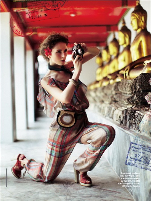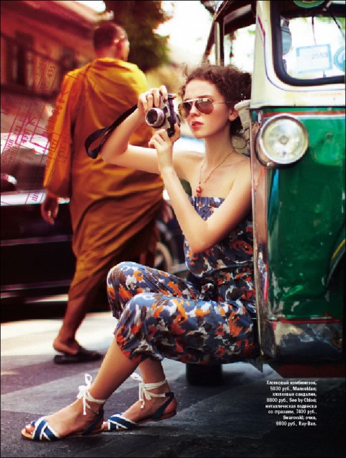 «В этот майский номер мы собрали и упаковали, как в чемодан, все, что может пригодится наступающим летом: нежные платья для выпускного бала, яркие комбинезоны для экзотических путешествий, серые костюмы для рабочих дней и белые наряды для теплых вечеров. Не забыли солнцезащитные очки, гели-бронзеры, интенсивно увлажняющие кремы и интересное чтиво о звездах мировой величины», – говорит главный редактор журнала Glamour Алла Белякова.