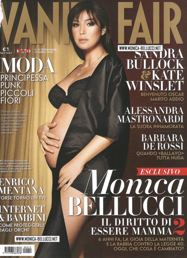 В этой же позе снималась также и Бритни Спирс, будучи в «интересном положении» в 2006 году для Harper’s Bazaar. Кстати, она и Моника Белуччи два раза попадали на обложки журналов будучи беременными.