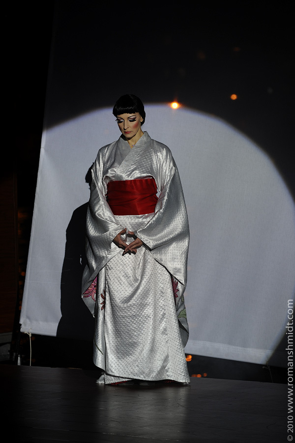 Образы моделей, представлявших коллекцию, были продуманы до мелочей: девушки изящно вышагивали по подиуму на настоящих японских гэта – традиционной обуви японских гейш, а прически и макияж, созданные стилистами института красоты «Сенсави», подчеркивали нежность и чистоту образа легендарных АМА.