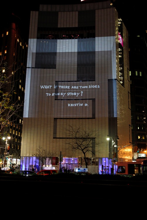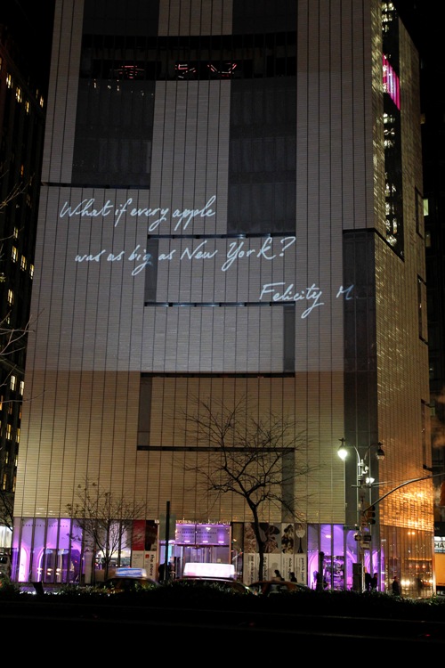 Эти 30 высказываний проецировались на внешние стены Нью-Йоркского Музея Изобразительных Искусств и Дизайна*. Экспозиция получилась настолько захватывающей благодаря революционной передовой технологии передачи 3D изображения.