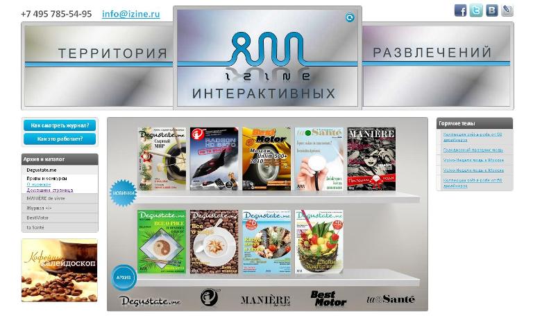 iZine – это территория онлайн-развлечений на любой вкус. Планируется увеличение посещаемости портала за счет консолидации аудиторий всех изданий и выхода на новый уровень продвижения. В ближайших перспективах: расширение линейки журналов и рост посещаемости портала до 2 миллионов посетителей в месяц.