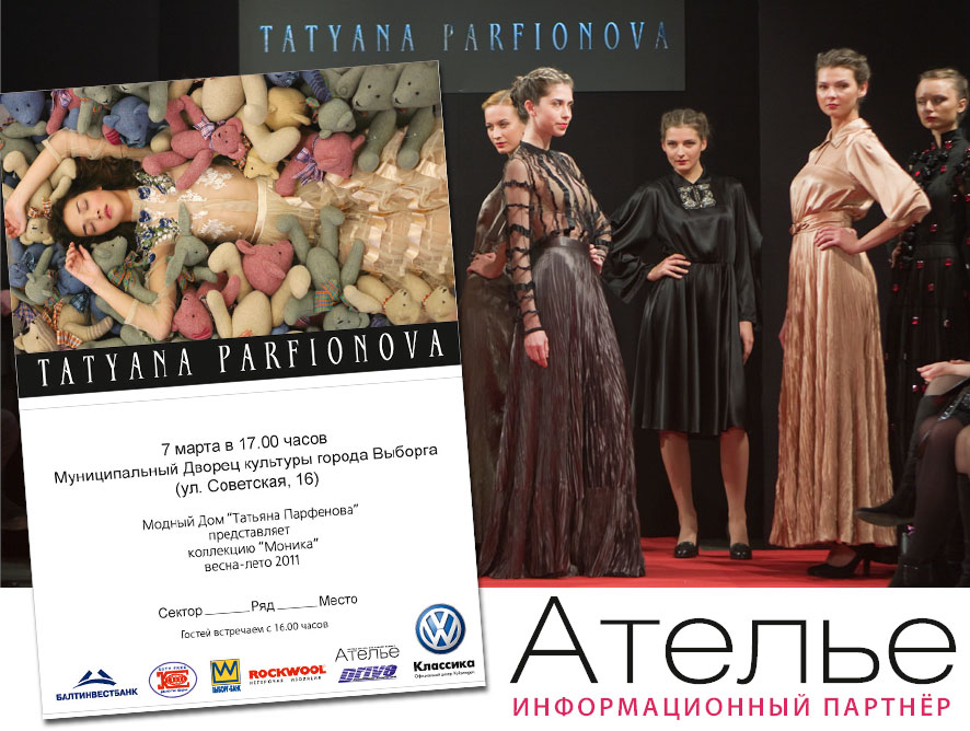 Логотип «Ателье» присутствовал на полиграфической продукции, видеоролик, посвященный юбилею журнала, транслировался на плазменных панелях перед началом мероприятия. Сертификат подписки на первый профессиональный журнал для тех, кто создает одежду «Ателье» в торжественной обстановке вручен известному дизайнеру Татьяне Парфеновой в качестве подарка от инфопартнера, который успешно сотрудничает с мастерами индустрии моды уже 10 лет.