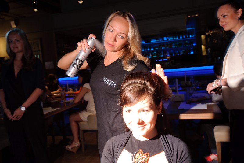 Эксперты Redken 5th Avenue NYC всем желающим создавали креативные укладки, а хорошее настроение обеспечили легкие закуски и бренд Redd’s – официальный backstage-напиток модного показа и всего конкурса.