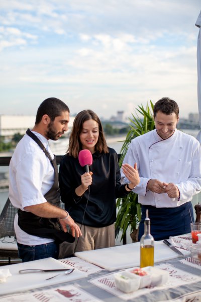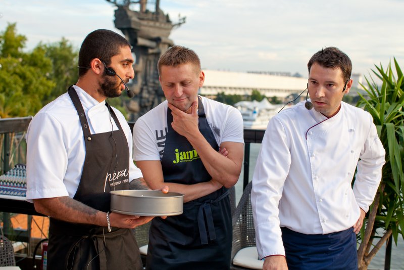Неподражаемые кулинарные супермены Денис Крупеня (поварская школа Ragout) и Артем Мартиросов (ресторан «Река») в этот вечер показали «класс» в приготовлении любимых блюд Джейми Оливера: теплого салата с цветной капустой и шоколадного торта с фундуком. Поддерживая тематику мастер-класса, шефы в финальном декоре своих блюд активно задействовали живые цветы, так что их творения помимо своих замечательных вкусовых качеств, еще и радовали глаз.