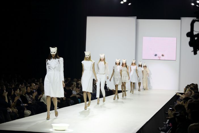 Основной источником вдохновения для коллекции весна-лето 2013 стали кошки, или точнее сравнение женщин с кошками, такими же уверенными в себе, грациозными, самодостаточными и в тоже время нежными. На заднем фоне подиум был украшен кошачьей мордочкой, и на протяжении всего показа играла музыка с милым мурлыканьем, а в конце шоу все модели вышли в масках кошек. Это сделало дефиле еще более театральным.