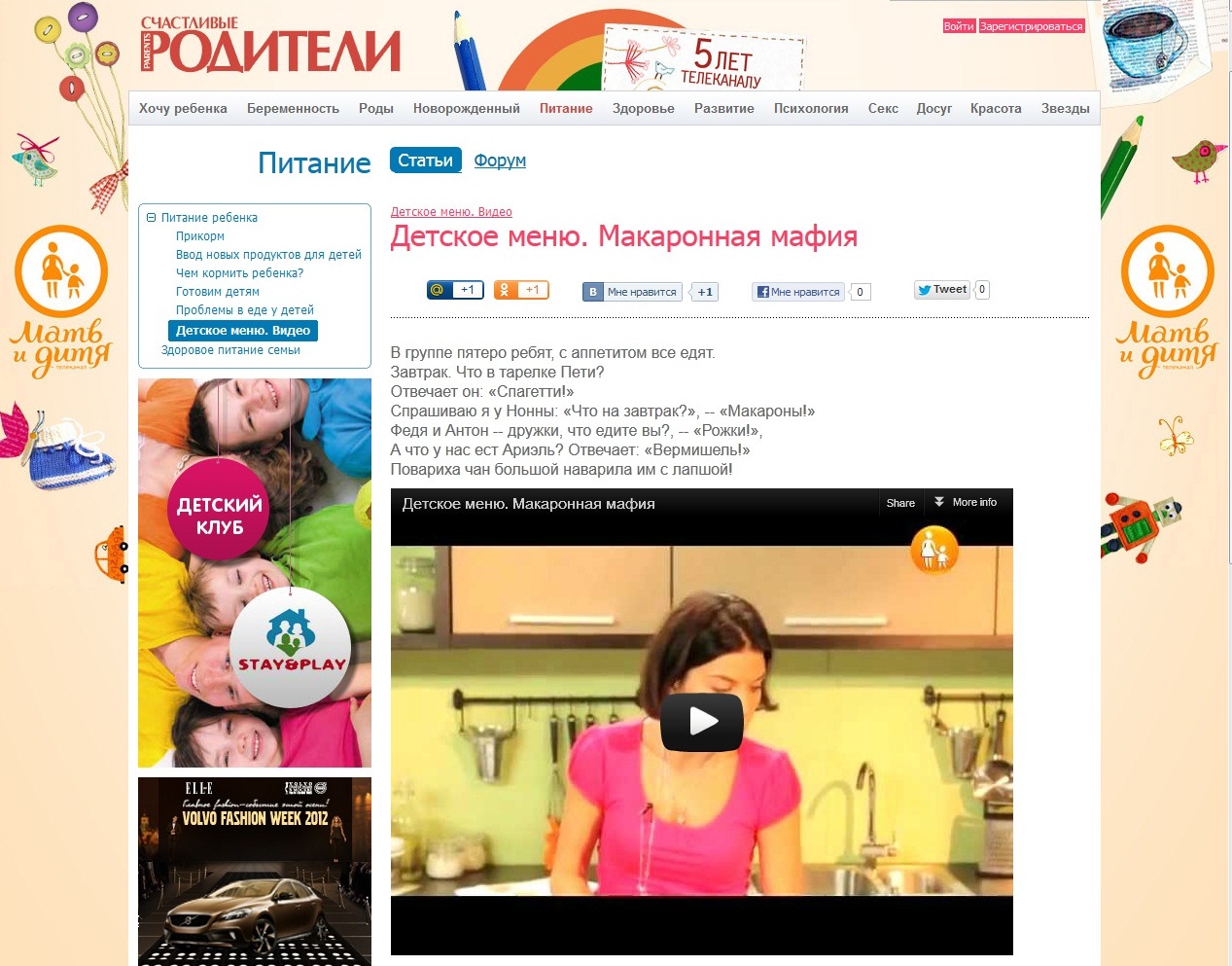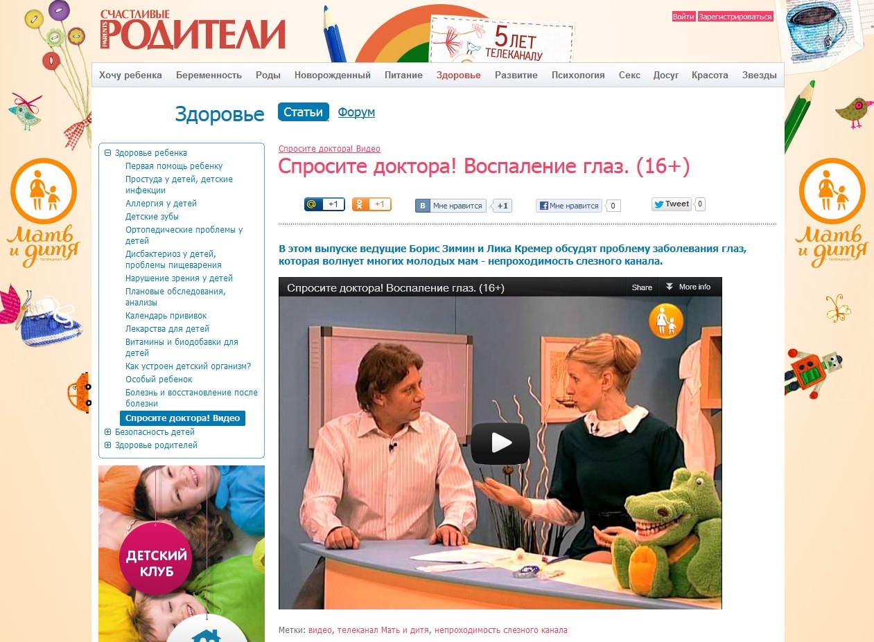 В рамках сотрудничества с телеканалом «Мать и дитя» на сайте www.parents-online.ru еженедельно размещаются новые выпуски программ: