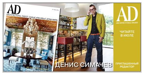 «Этот номер AD – особенный: второй раз в истории журнала мы делали его с приглашенным редактором. В мае 2007-го это был ресторатор и декоратор Степан Михалков. Герой июля 2008 – Денис Симачев. Вы увидите дом Дениса в Доминикане, его любимые рестораны и гостиницы, лица его друзей, узнаете его реакцию на дизайнерскую мебель в миланских магазинах. Это немало, но это не все. У номера есть еще 2 рабочие темы – новые материалы и эклектика. Свобода выбора и средства, с помощью которых ее можно реализовать. Обе темы имеют к Симачеву непосредственное отношение».