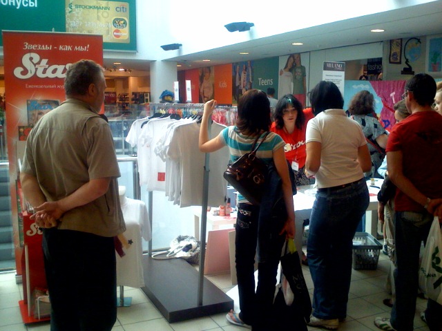 Начало акции StarHit совпало с главным событием осени в Стокманн «Белая Дача» - Вечером Постоянных покупателей 5 сентября 2008 года. В окружении последних новинок с подиумов Милана постоянные клиенты «Стокманн» смогли первыми создать собственную эксклюзивную вещь. Стиль, изысканность и оригинальность идей итальянской модной индустрии вдохновляли, а простор для творчества был безграничен: палитра ярких красок, белоснежная футболка и богатая фантазия.