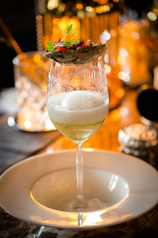 Специально к летнему сезону в меню появились легкие блюда, для тех, кто строго следит за фигурой. Например, «Салат с кальмарами на гриле, овощами и пряными травами с пенкой из сыра сулугуни и райхана (756 рублей) и «Салат из креветок с мини-равиоли» (890 рублей). В равиоли шеф-повар отправляет печеные овощи, а к микс-салату добавляет цукини и авокадо для еще большей свежести. Запоминающимися гастрономическими экспериментами могут стать «Устричный суп с морской пенкой» (720 рублей) и