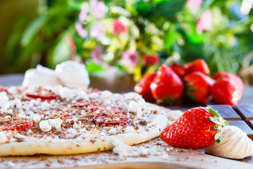 Пицца «Дольче» с клубникой, молочным шоколадом и нежными меренгами