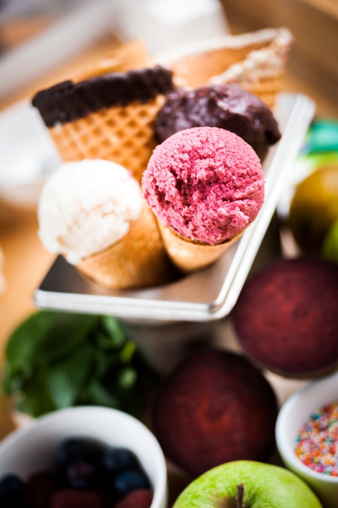 Ресторан Fresh предлагает попробовать необычное мороженое, которое не только удивит своим вкусом, но и легкостью. Шеф-повар ресторана совместно с Ириной Азаровой, увлеченной вегетарианкой и основателем сети ресторанов Fresh, взяли такие продукты, как свекла, базилик, кардамон, батат, добавили суперфуды, морскую соль, кокосовое и соевое молоко – все соединили и получили 5 необычных вкусов: