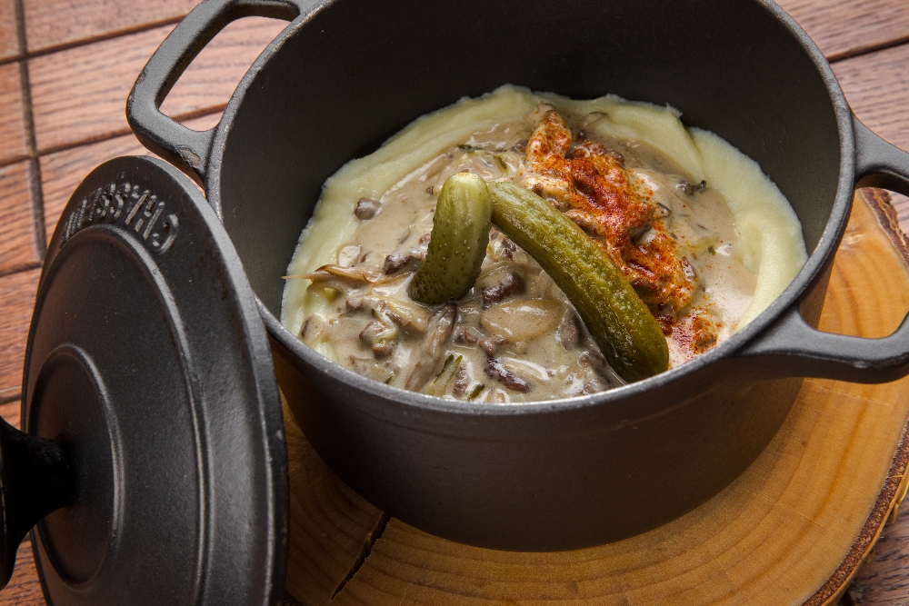 Бефстроганов с картофельным пюре