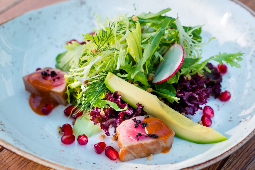 Теплый салат с тунцом и авокадо