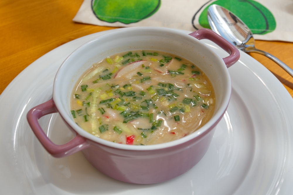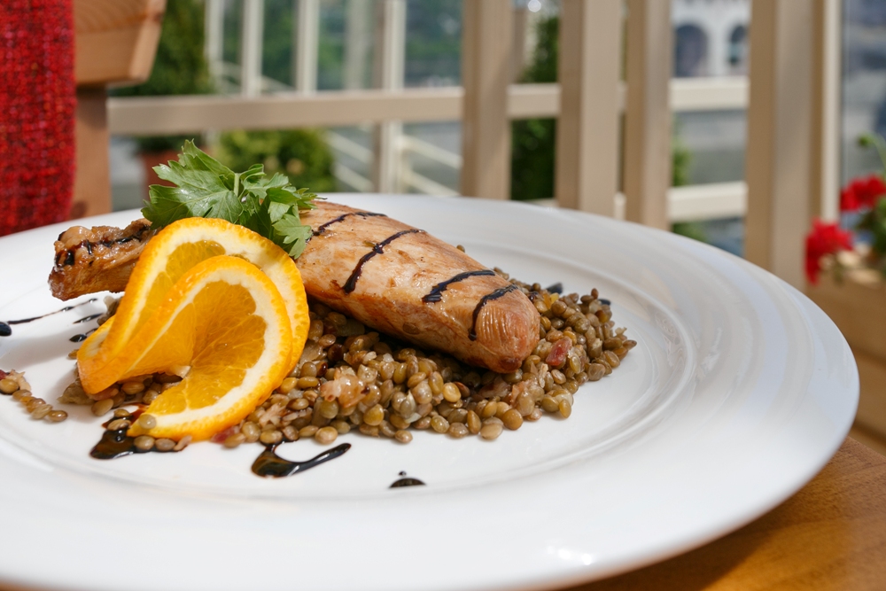 В разделе сезонных первых блюд есть мясная окрошка (330 руб.) и суп «Летний» с курицей (360 руб.). На второе шеф рекомендует куриную грудку, маринованную с имбирем и соевым соусом и сервированную чечевицей с луком, беконом и бальзамическим кремом (560 руб.), или тушеную свиную шейку с рисом и лечо (740 руб.) – и то и другое заслуживает похвалы. На сладкое стоит отведать баварский сладкий омлет с яблоками – апфельшмаррн (390 руб.), его подают с шариком ванильного мороженого. А на случай жары идеально подойдет клубничный суп с мятой и фисташковым мороженым (480 руб.). Впрочем, насладиться летом помогут и освежающие лимонады: «Бройхаус» из сока лимона, апельсина и фруктового чая, микс на основе клубничного пюре с имбирем и лаймом или, например, безалкогольный мохито.