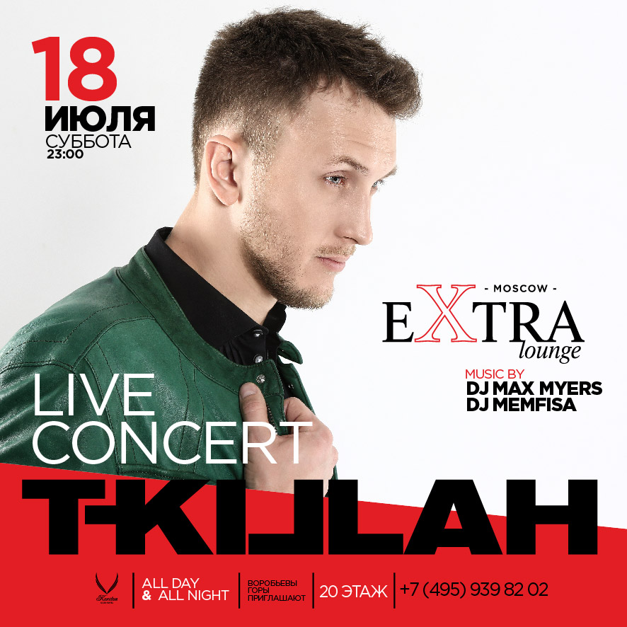 Ресторан Extra Lounge Moscow приглашает 18 июля на концерт популярного российского артиста с мощной позитивной энергетикой T-KILLAH.