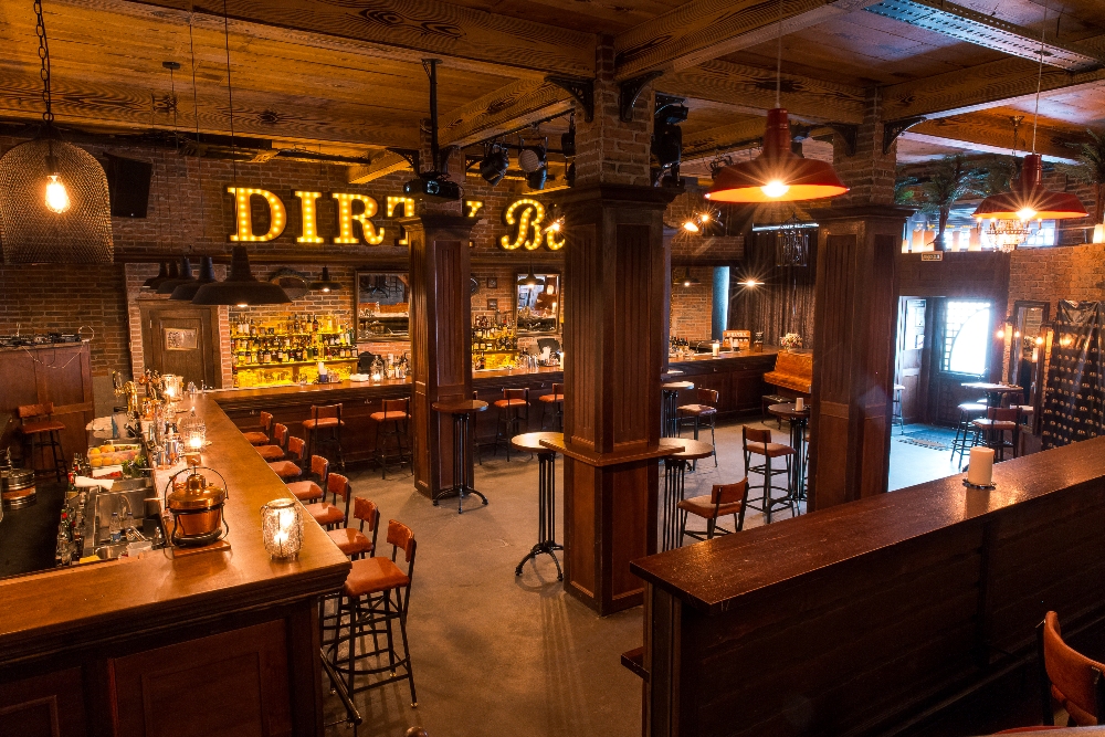 Для тех, кто ищет тишины и общения, - нижний этаж Dirty Blonde. Тем, кто пришел на коктейли и танцы, - верхний. Под крышей одного бара – фактически бара два, с разными интересами и разной атмосферой. Наверху огромная, без малого двадцать метров, барная стойка, за которой одновременно работают не меньше десяти барменов, и живая музыка. Внизу – еще один бар, заставленный дорогим английским фарфором (в чайных чашках здесь подают и эрл грей, и Long Island), граммофон и два отдельных зала с фотографиями актрис золотой эпохи голливудского кино. Но у обеих ипостасей Dirty Blonde, как и у команды его создателей, одна задача – раскрыть тайну хорошего вкуса: в еде, напитках, философии, отношении к жизни.