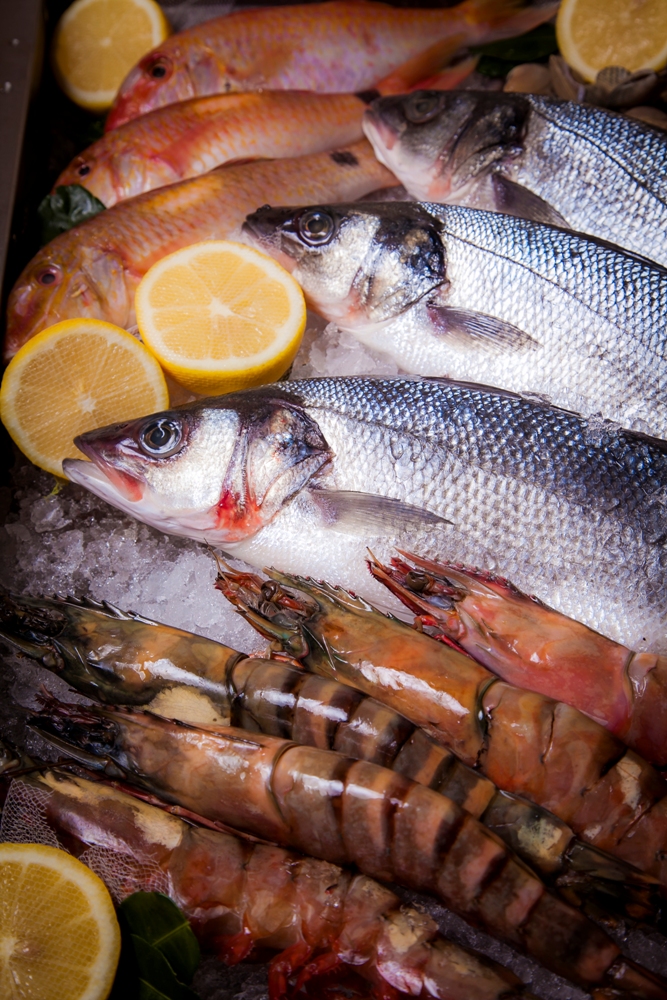 В стеклянной витрине, установленной в основном зале, гости всегда могут найти все лучшее, что может предложить морская стихия: от барабульки, лангустинов и королевских креветок, до мини-кальмаров, мидий и вонголе, а также низменного дорадо и сибаса.