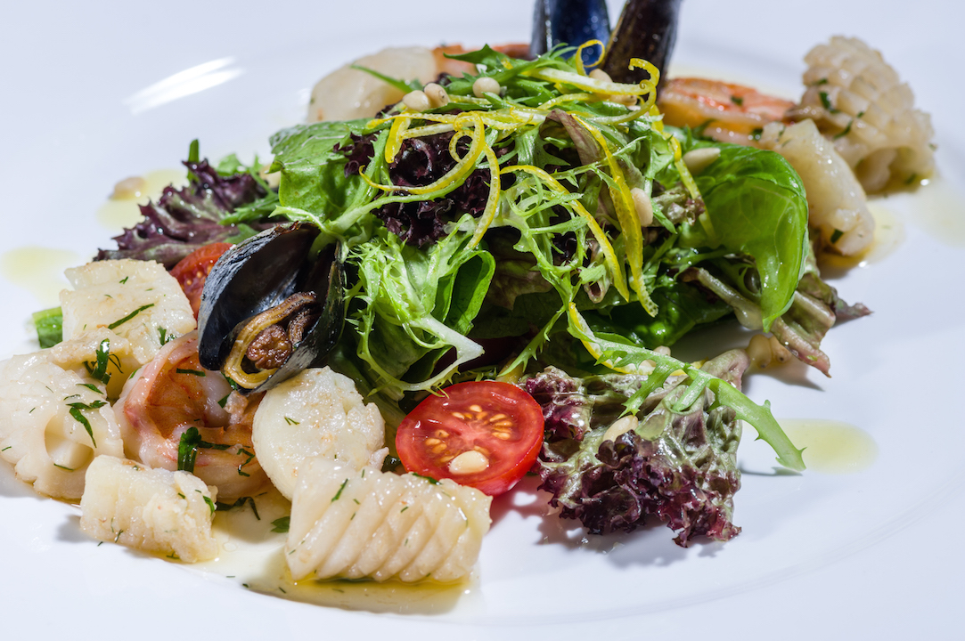 В разделе рекомендуется обратить внимание на следующие позиции: салат из морепродуктов (650 руб.) — легкий салат с апельсиновой заправкой, томатами черри и обжаренными в белом вине морепродуктами; теплый салат с куриной печенью (490 руб.); салат с сельдереем и манго (590 руб.) — микс салатов с тайским манго, сельдереем и сыром мацарелла с бальзамико-апельсиновой заправкой; салат с утиной грудкой и брусничной заправкой (550 руб.) и салат с грушей и соусом айоли (320 руб.) — листья салата с красным луком, соусом айоли и спелой грушей.
