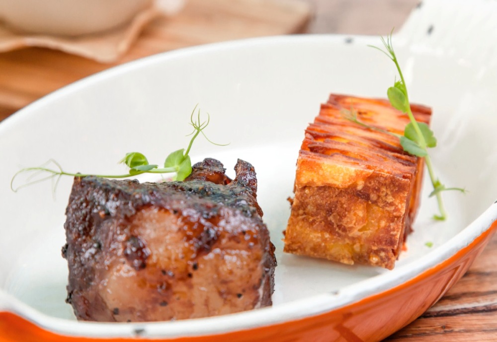 Мусс из телячьей печени со сливой и вареньем из черноплодной рябины