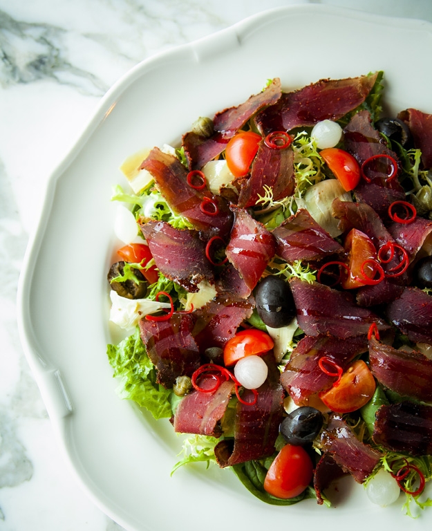 Темой обширного зимнего меню стали основательные мясные блюда. Все новинки – это большие и сытные порции, как и полагается в холодное время года. Даже салат по-андалузски (420 р.) здесь составляет конкуренцию основному блюду, благодаря щедрому количеству вяленой говядины, собственного приготовления. А зная, что среди новинок появился душистый суп из ребра бычка с белой фасолью (400 р.) – холодов можно не бояться вовсе.