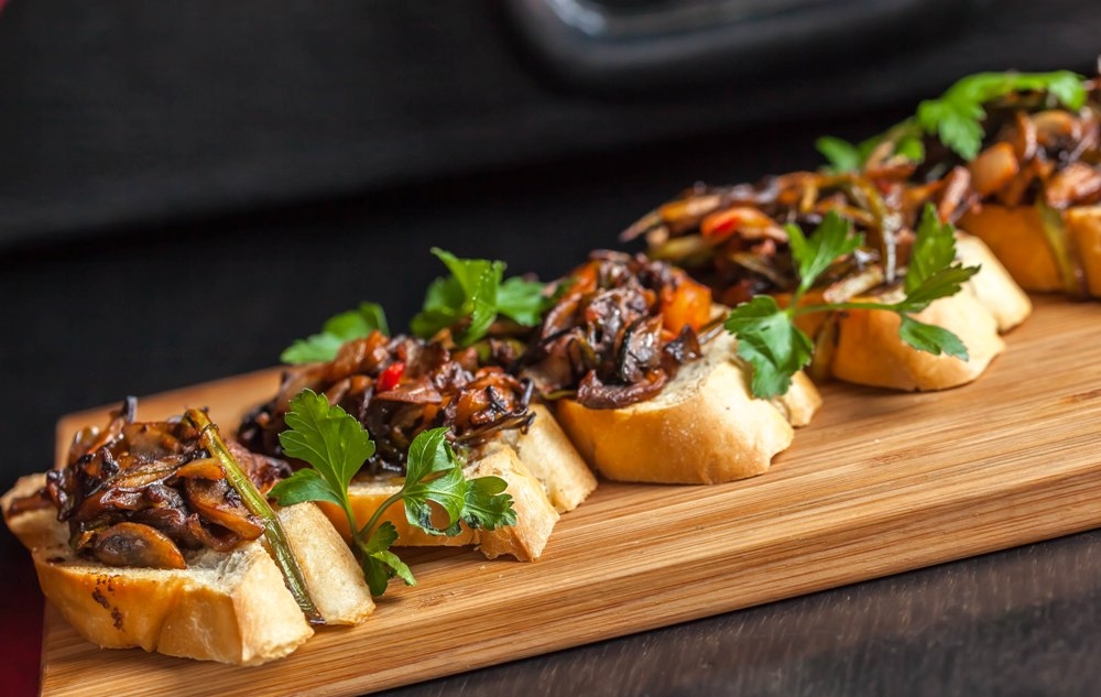 Знаменитая брускетта в ВиноЛавке представлена в виде сета с аппетитными начинками на любой вкус: с ростбифом, томатами, пряным перцем и рикоттой, сливочной курицей и огурцом, с креветками и авокадо, с подкопченым окороком. Сомелье рекомендует: Chateauneuf du Pape AOC Domaine La Roquete (Франция) к мясу, Chablis Premier Cru AOC Montmains Jean-Marc Brocard (Франция) к рыбе, а Terre More Maremma Tenuta dell'Ammiraglia Frescobaldi (Италия), так подходящее к сыру, предлагает оценить в сочетании с Овощным сетом с соусом Дор Блю.