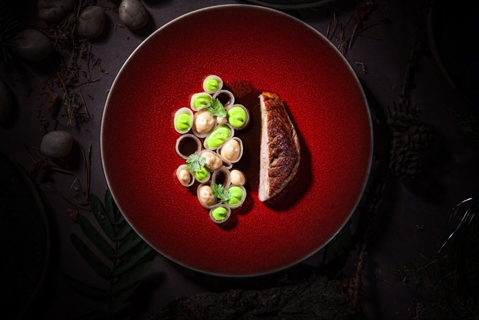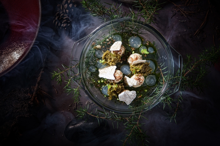 В лесу этом встречаются не только привычные для местности утки, еловые побеги, малина и ягель, но и морские гребешки, быки, палтусы, немного фенхеля и цветной капусты. Начинать прогулку шеф рекомендует с «Эликсира молодости». В чем секрет эликсира и каким образом он добыт, история умалчивает, но судя по Владу — он работает как надо. Следующие шесть блюд уводят с привычной гастрономической тропинки, но под чутким присмотром «лесника» заблудиться не получится. Все продукты в сете понятные, знакомые, местами даже простые, но их сочетания и технологии приготовления бессовестно выдают руку мастера. Заканчивается путешествие на лесной опушке, где растет ягель, малина и темный шоколад.